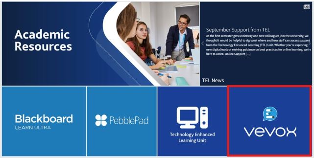 Staff can access Vevox via the Staff Webpage > Academic Resources. It’s straightforward to log in and start creating polls, quizzes, or Q&A sessions for your students.